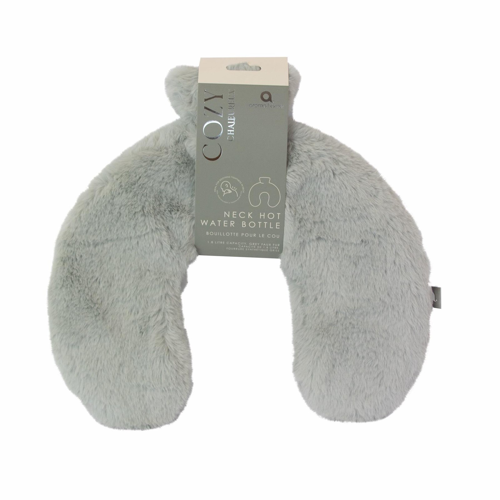 Aroma Home Grey Faux Fur Plush Neck Warmer Curved Hot Water Bottle