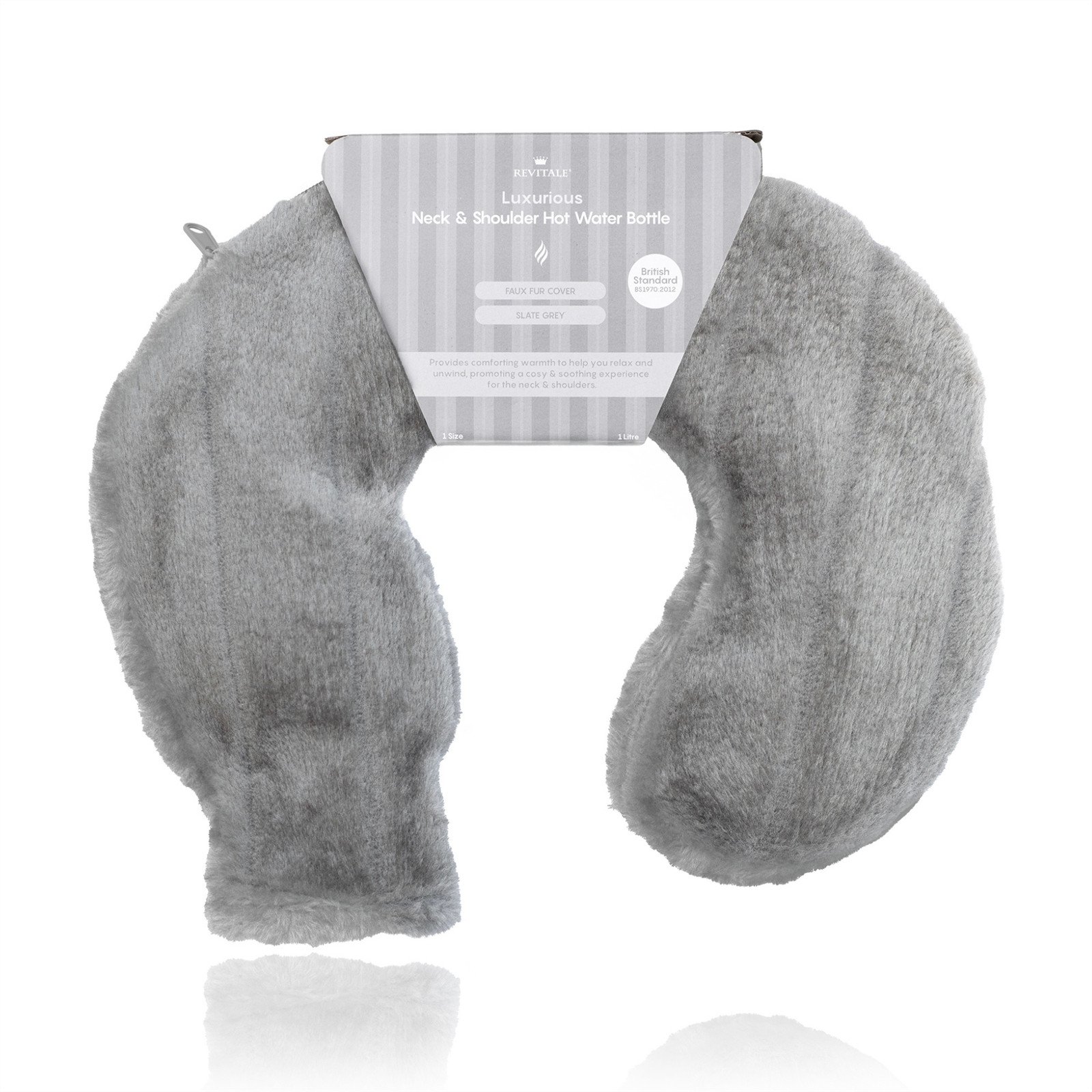 Revitale Faux Fur Neck & Shoulder Hot Water Bottle Slate Grey - Soft & Cosy