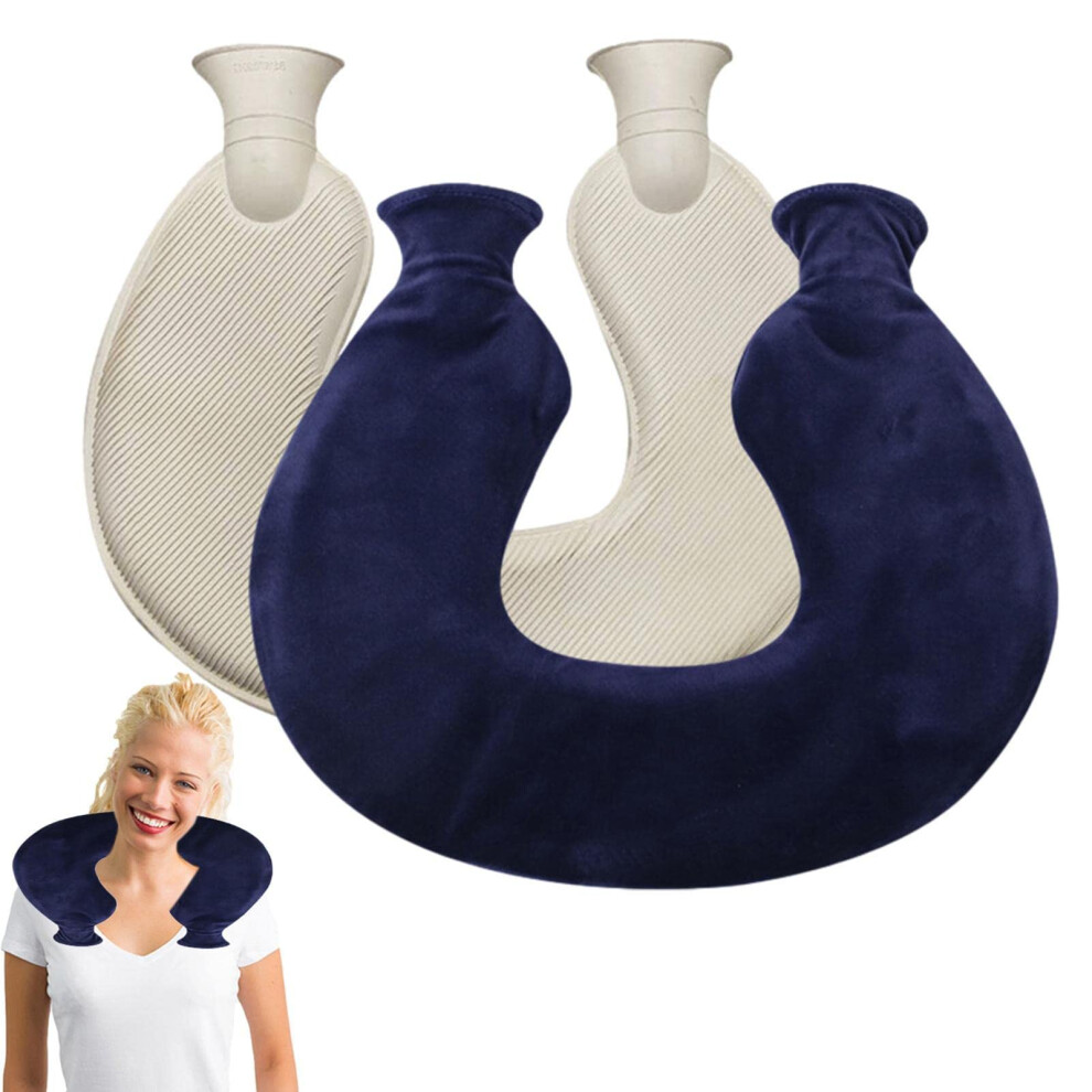 U-Shaped Neck & Shoulder Hot Water Bottle With Soft Cover, Leak-Resistant Rubber Bag For Comforting Heat For Daily Use(Blue)