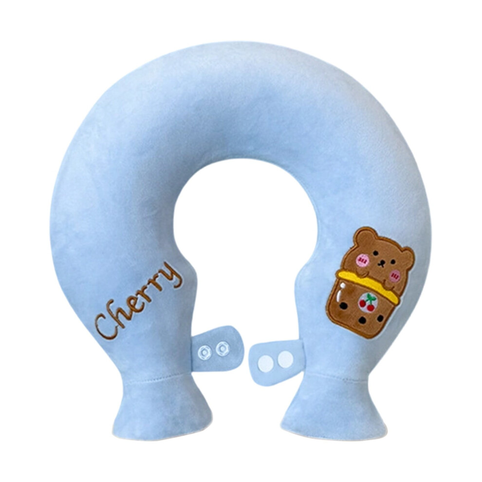 1.8L U Shaped Neck Hot Water Bottle With Bear Embroidery Leakproof Winter Neck Warmer Soft Cover Reusable Heating Pad(Blue-34X33Cm)