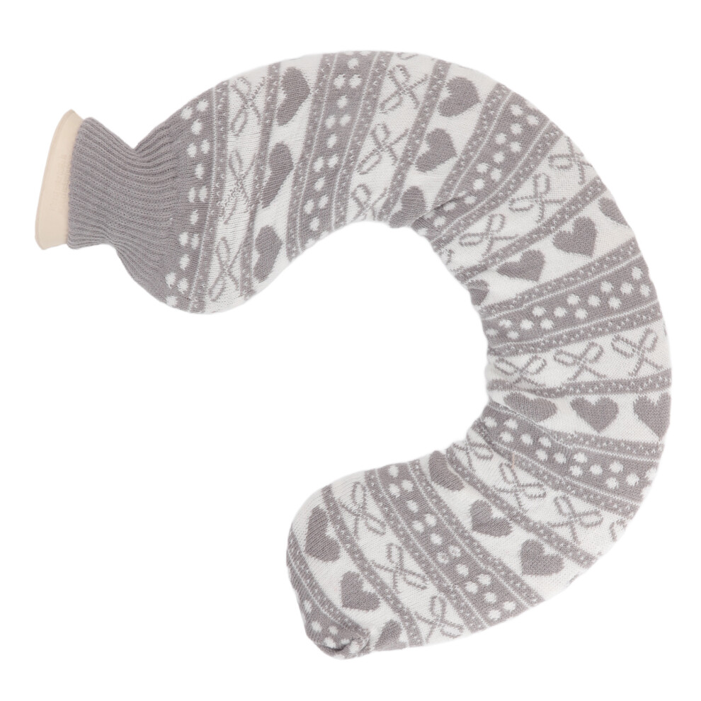 U Shaped Hot Water Bag Soft 1L Water Injection Neck Shoulder Hot Water Bottle with Soft Cover for Travel Grey Bowknot