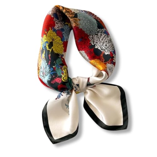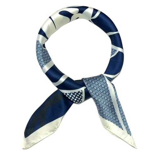 WESTEND CHOICE Square Satin silk Scarves Printed Neck Scarf 50s Retro Women Scarf Lightweight Silky Bandana Wrap women's scarves 70 x 70 cm (Navy)