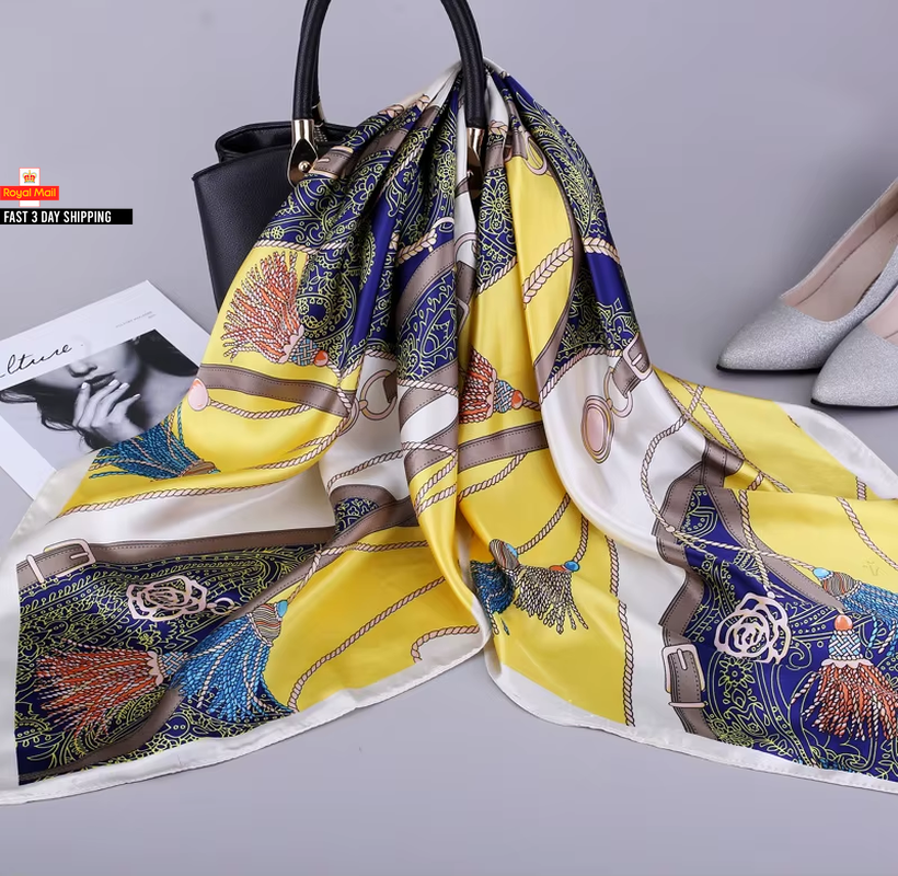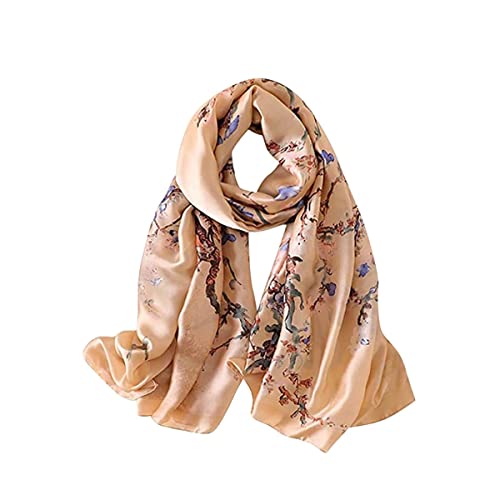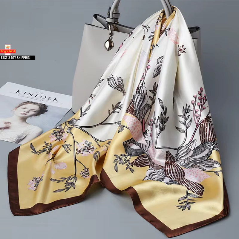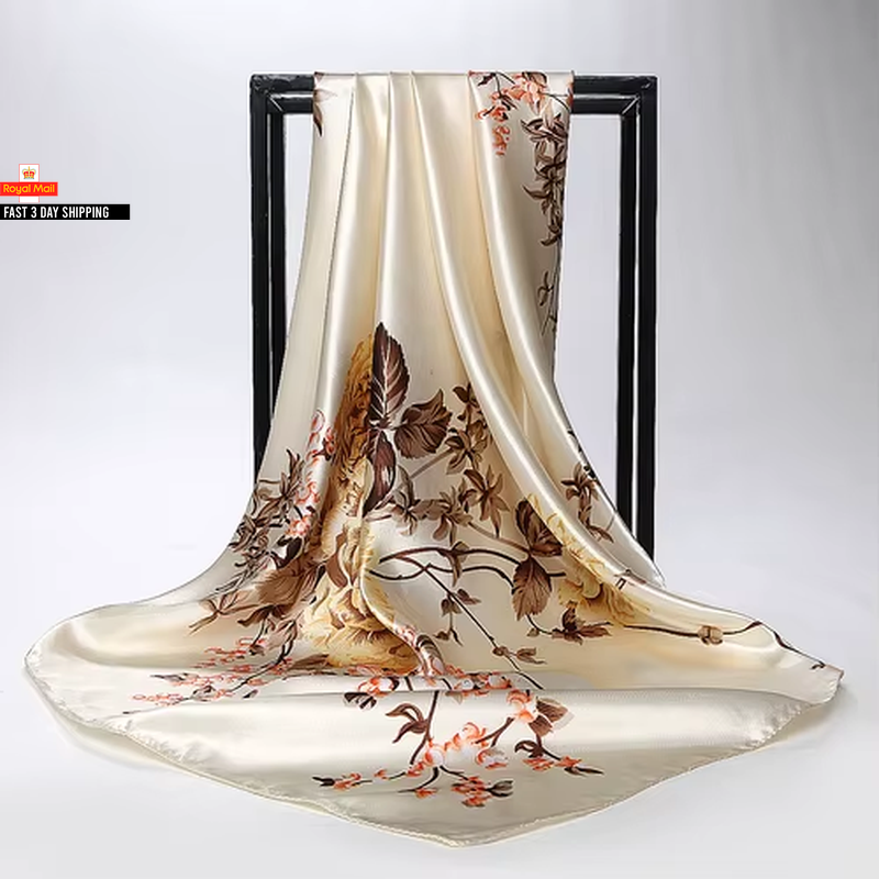 Trillion London® Spring Collection | Gold Floral Print Silk Neck Scarf For Women | Ladies Lightweight Scarves | Shawl Wraps | Suitable for Daily Life, Gifting |Smooth Soft Finish| Size-180cm*90cm