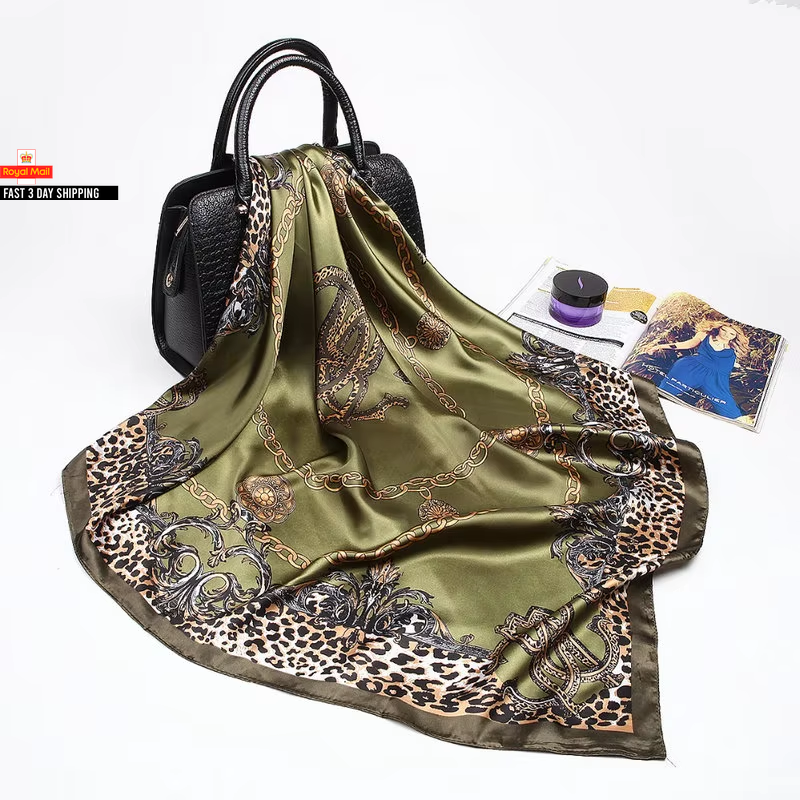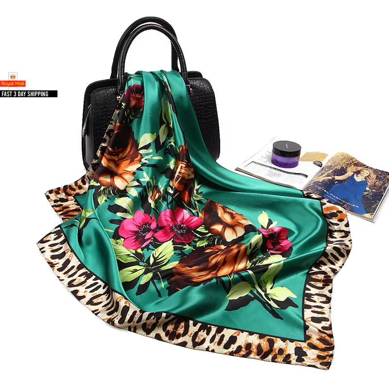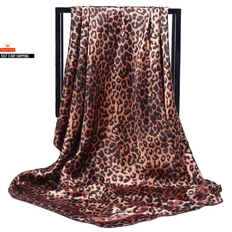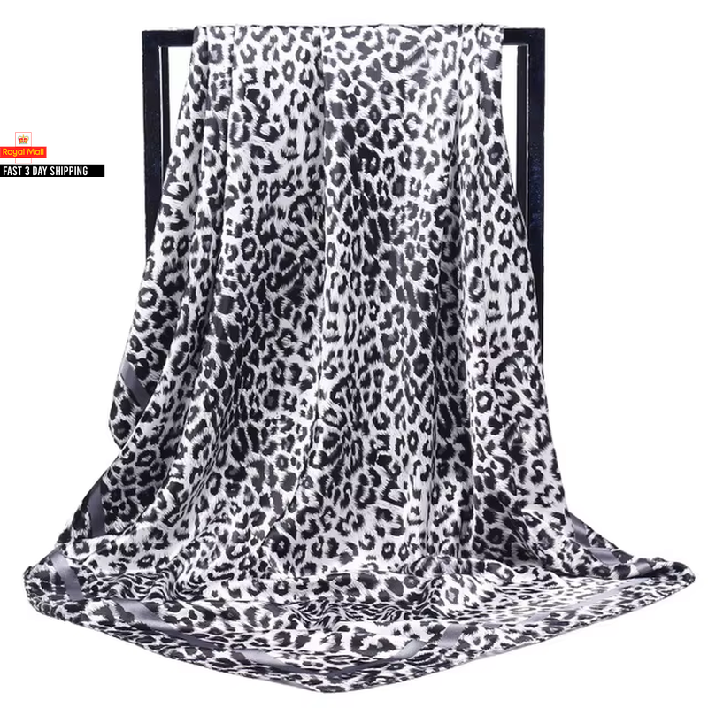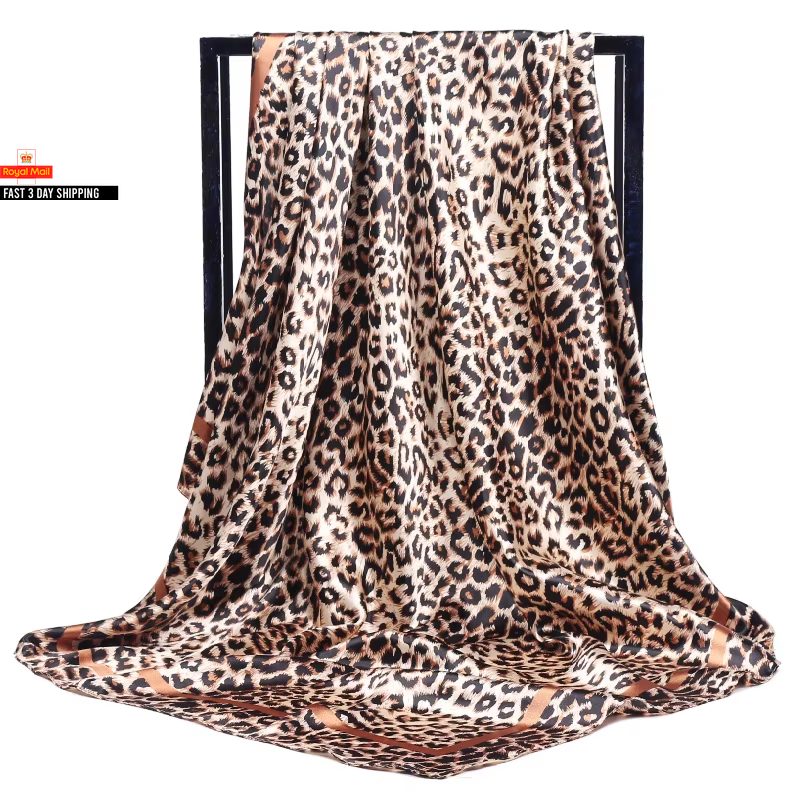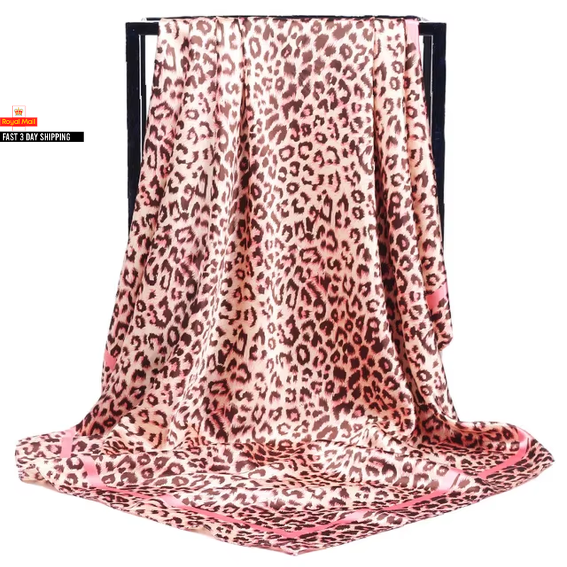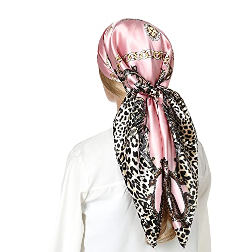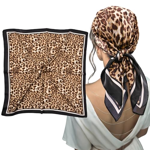 mtuihfo Square Scarf, Neck Scarf for Women Satin Head Leopard Print Stylish Spring Head Scarf for Beach Travel Vacation Sports Gifts (70X70 CM)