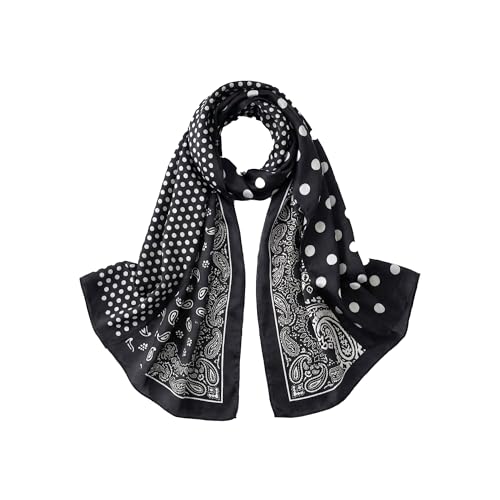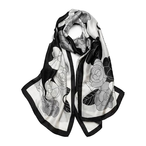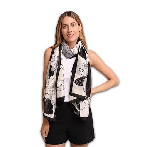 Trillion London® Silk Scarf | Long Neck Scarf for Women | Ladies Lightweight Scarves | Shawl Wraps | Suitable for Daily Life | Travelling & Gifting | Soft Finish| Size-180cm*90cm (Black & White)