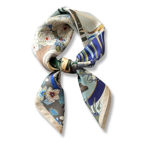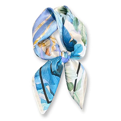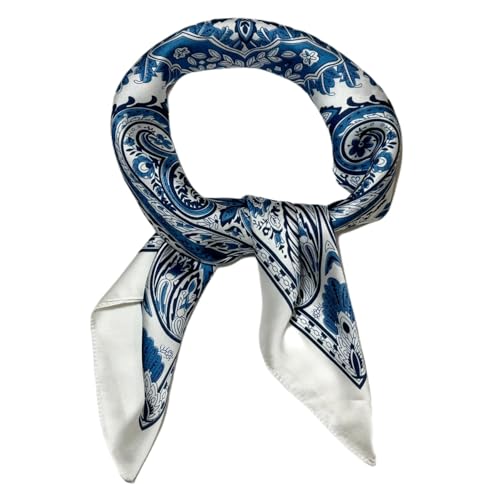 WESTEND CHOICE Square Satin silk Scarves Printed Neck Scarf 50s Retro Women Scarf Lightweight Silky Bandana Wrap women's scarves 70 x 70 cm (Blue)
