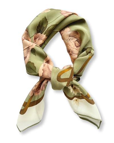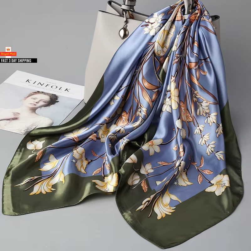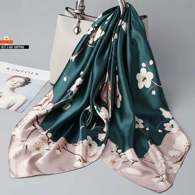 Trillion London® Spring Collection | Green Floral Print Silk Neck Scarf For Women | Ladies Lightweight Scarves | Shawl Wraps |Suitable for Daily Life, Gifting | Smooth Soft Finish|Size-180cm*90cm