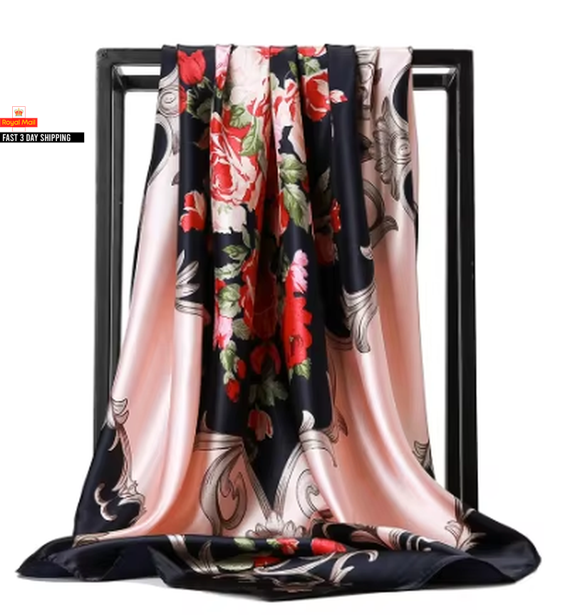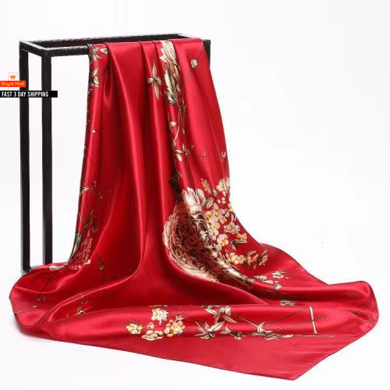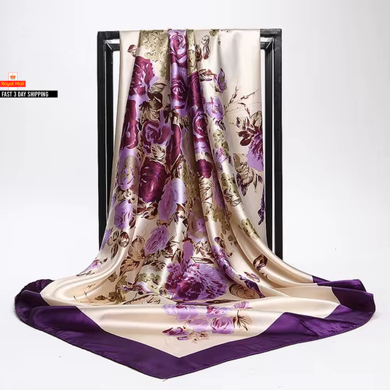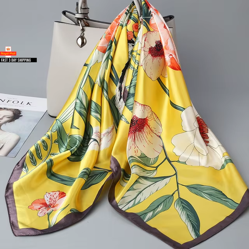 Neck Scarf For Women - Lightweight Floral Print Satin Scarf For Elegant Shawl Wrap Versatile Fashion For Summer Travel