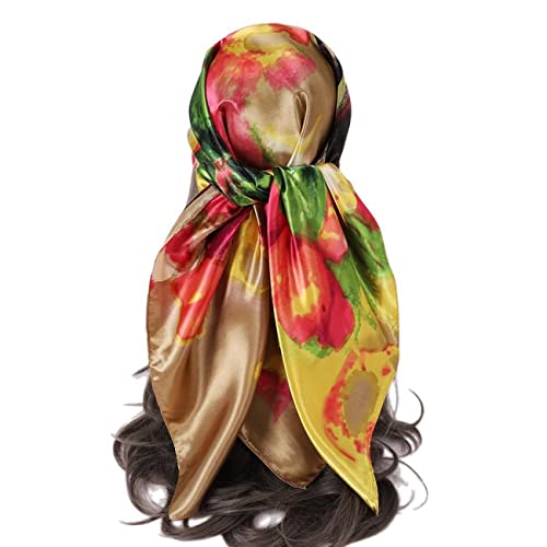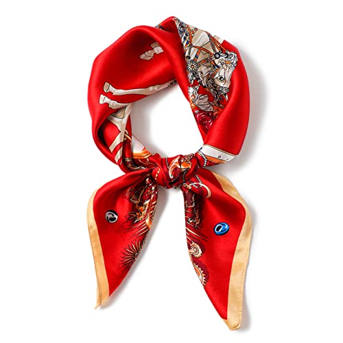 Ymapinc Silk Neck Scarf for Women Hair - 70 * 70 cm Red Printed Satin Scarf, Soft Lightweight Fashion Square Bandanas for Sleeping