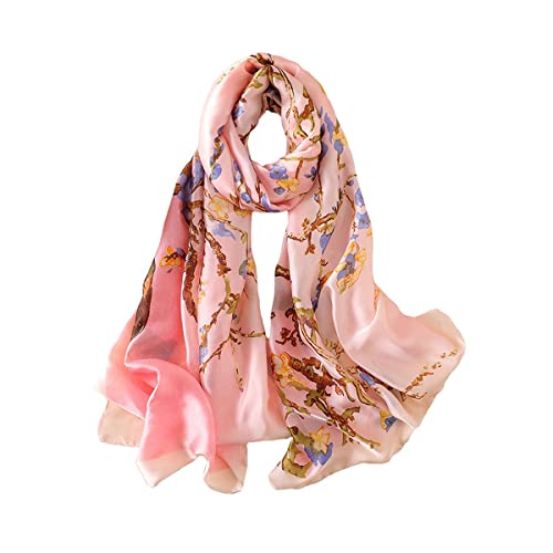 Trillion London® Spring Collection | Pink Floral Silk Neck Scarf For Women | Ladies Lightweight Scarves | Shawl Wraps | Suitable for Daily Life, Gifting | Smooth Soft Finish | Size - 180cm*90cm