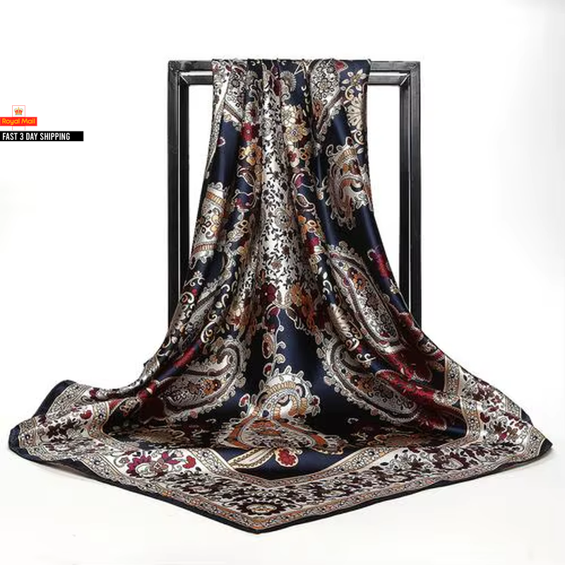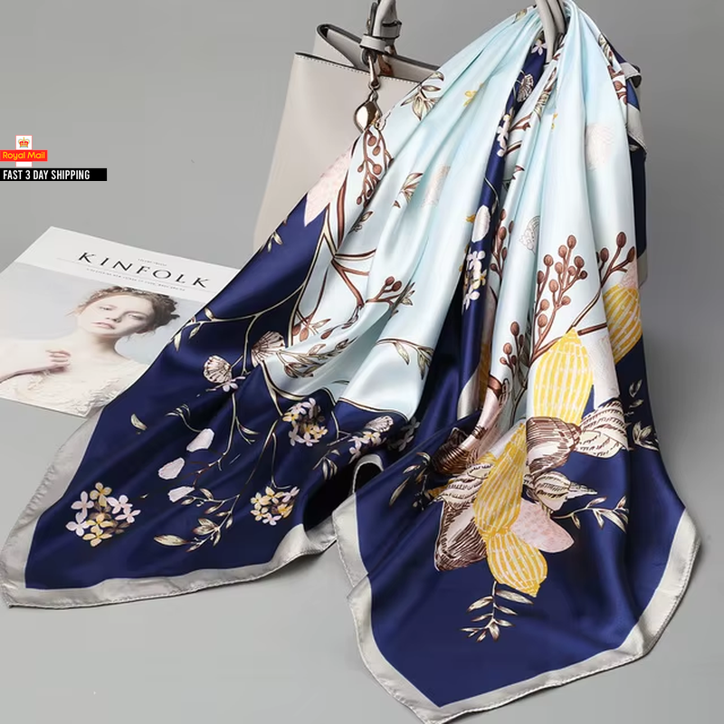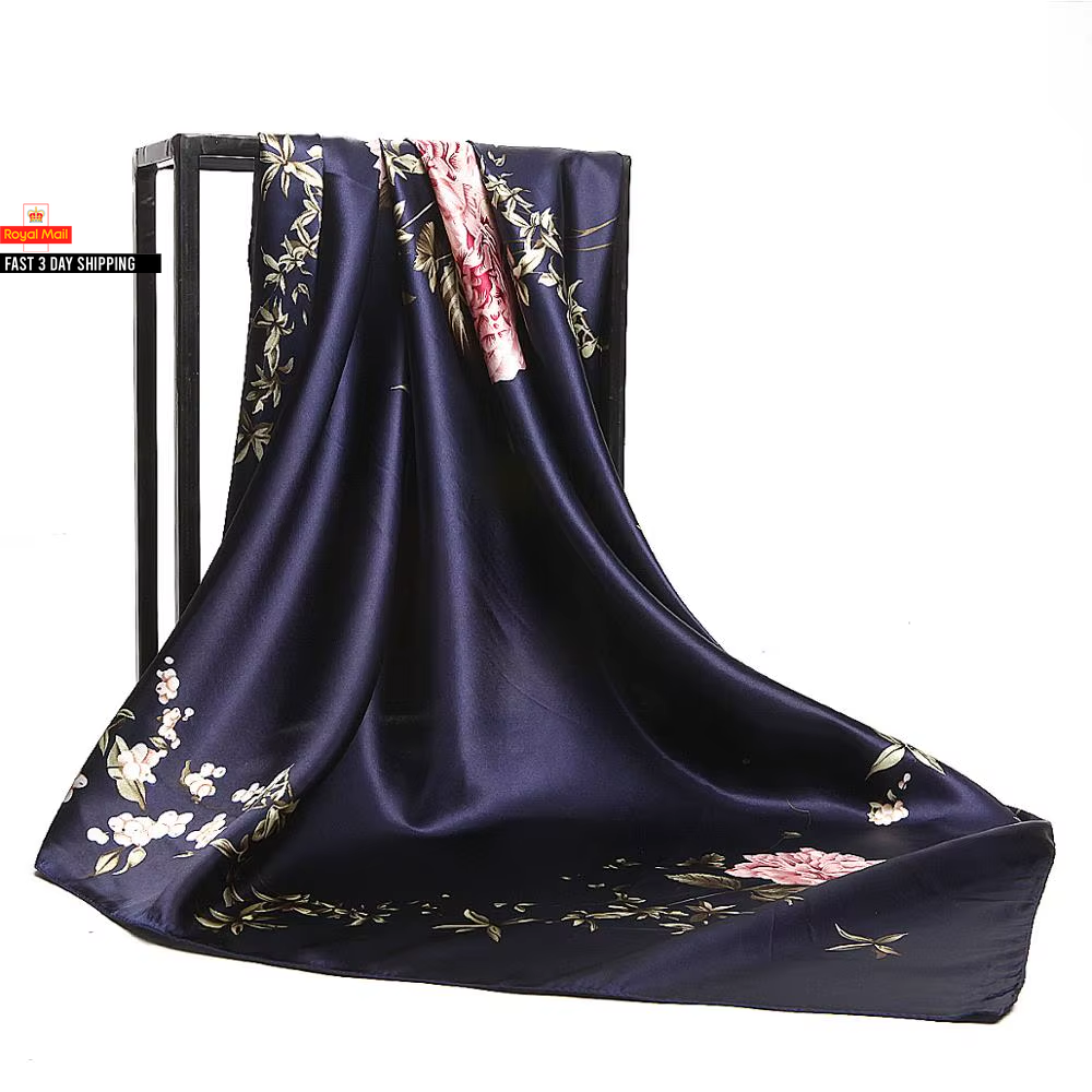 Trillion London® Silk Scarf| Navy Blue Flower Print | Silk Neck Scarf For Women | Lightweight Scarves for Ladies | Shawl Wraps | Suitable for Gifting | Smooth Soft Finish | Size - 180cm*90cm