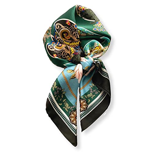 WESTEND CHOICE Square Satin silk Scarves Plain Neck Scarf 50s Retro Women Scarf Lightweight Silky Bandana Wrap women's scarves 70 x 70 cm (Dark green)