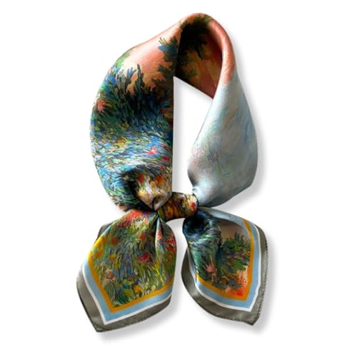 SUOXU Silk Neck Scarf Women,100% Silk Satin Square Head Scarf,Gifts for Mum,Girls Birthday Gifts,Mothers Day Gifts from Daughter,Son,Presents for Mum,Original Sand Painting Pattern Design(53 x 53cm
