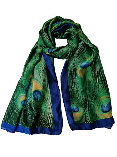 Trillion London® Spring Collection | Peacock Print Silk Neck Scarf For Women | Ladies Lightweight Scarves | Shawl Wraps | Suiutable for Daily Life, Gifting | Smooth Soft Finish | Size - 180cm*90cm