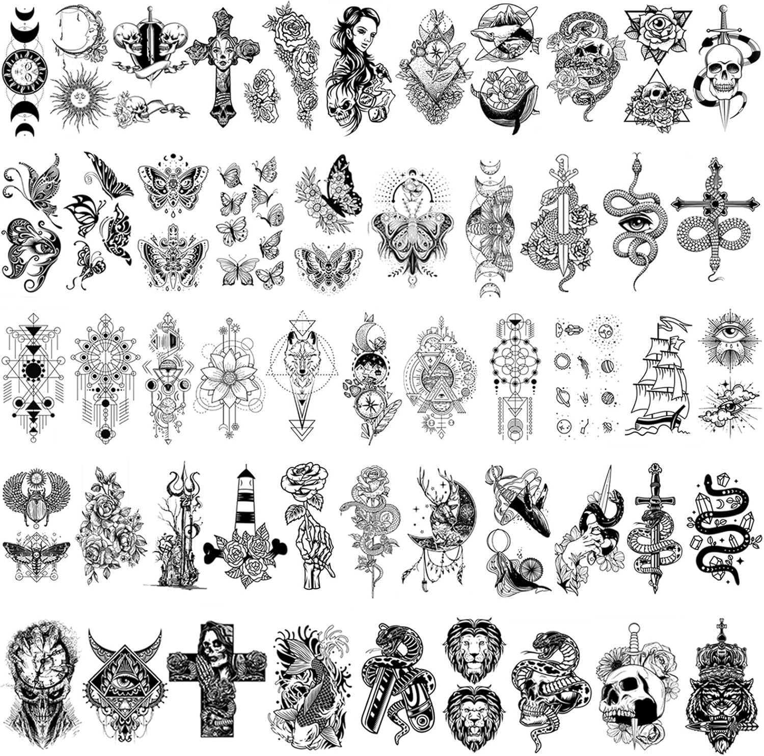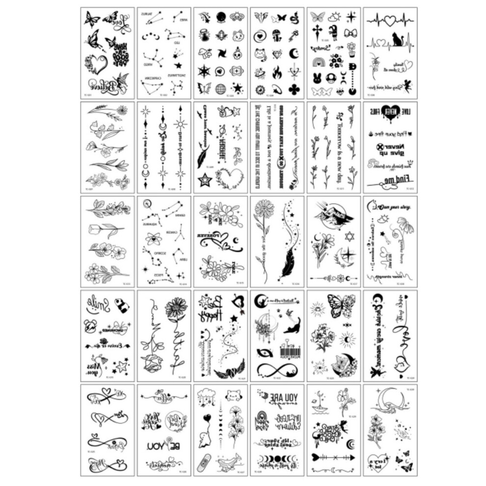 Tattoo Waterproof Black Temporary Tattoos Small Body Art Stickers Arm Tattoos For Men Women Hand Neck Wrist (30 Sheets)
