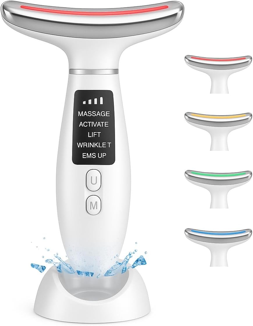 Christmas Gifts Neck Face Massager, Electric Skin Tightening Machine Neck Lift with 45°C Heat EMS Massage, Seven LED with Vibration,Anti-Aging Eye Massagers for Skin Care