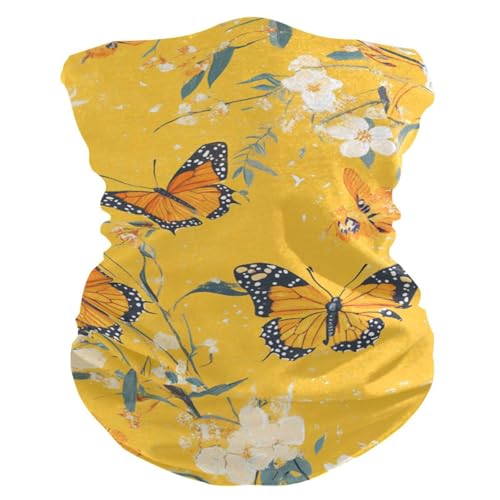 Neck Scarf Beautiful Butterfly Flower Yellow Quick Drying Face Shield Windproof Neck Warmer for Tennis Women 26X30cm