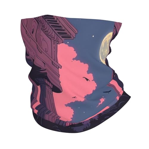 Neck Gaiter Ancient Greek Statues Temple Moon Clouds Design White UV Protection Half Face Scarf Washable Neck Warmer for Sports Women 26X30cm