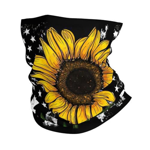 Sunflower And American Flag Print Neck Warmer Ultra-Soft, Stretchy Neck Gaiter Winter Neck Gaiter Warmer For Menand Women