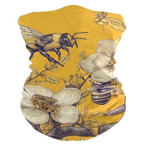 Neck Scarf Wood Yellow Bee Flower Multifunctional Tube Scarf Unisex Neck Warmer for Skiing Women 26X30cm