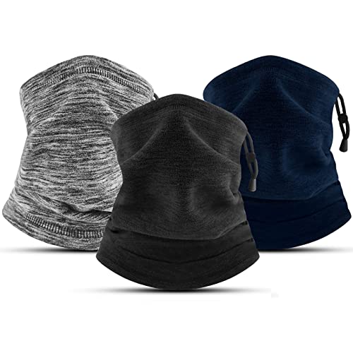 COOLOO 3 Pack Neck Warmer Snood for Men Women Unisex Fleece Winter Neck Gaiter Windproof Bandana Adjustable Face Covering Scarf for Skiing Motorcycle Outdoor Sports Running Cycling