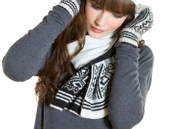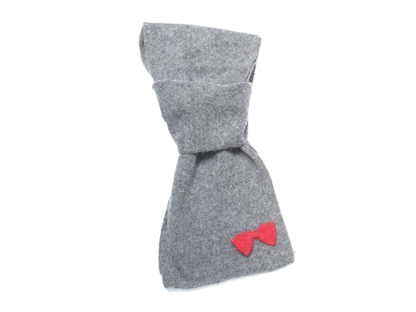 Ladies Grey Red Bow Scarf - Ultra Soft Winter Knit Neck Warmer for Women