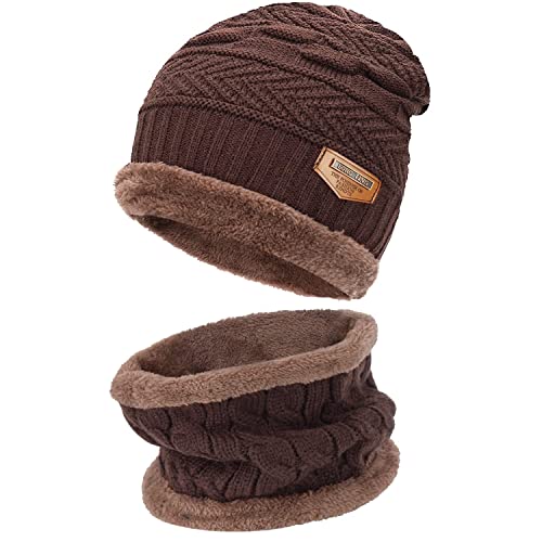 Bequemer Laden Mens Winter Beanie Hat Scarf Set Warm Knit Thick Fleece Lined Skull Cap Neck Warmer Gifts for Women Men