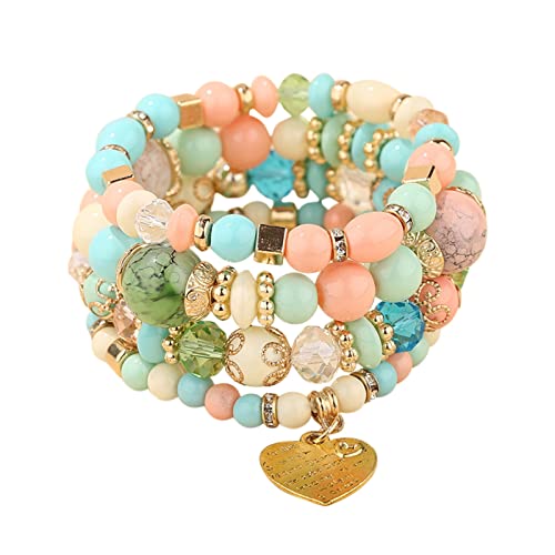 Rrunsv Stackable Bead Bracelets Ladies Mens Stretch Multilayer Bracelet Set Multicolor Jewelry Blue Necklace and Earring Sets for Women (F, One Size)