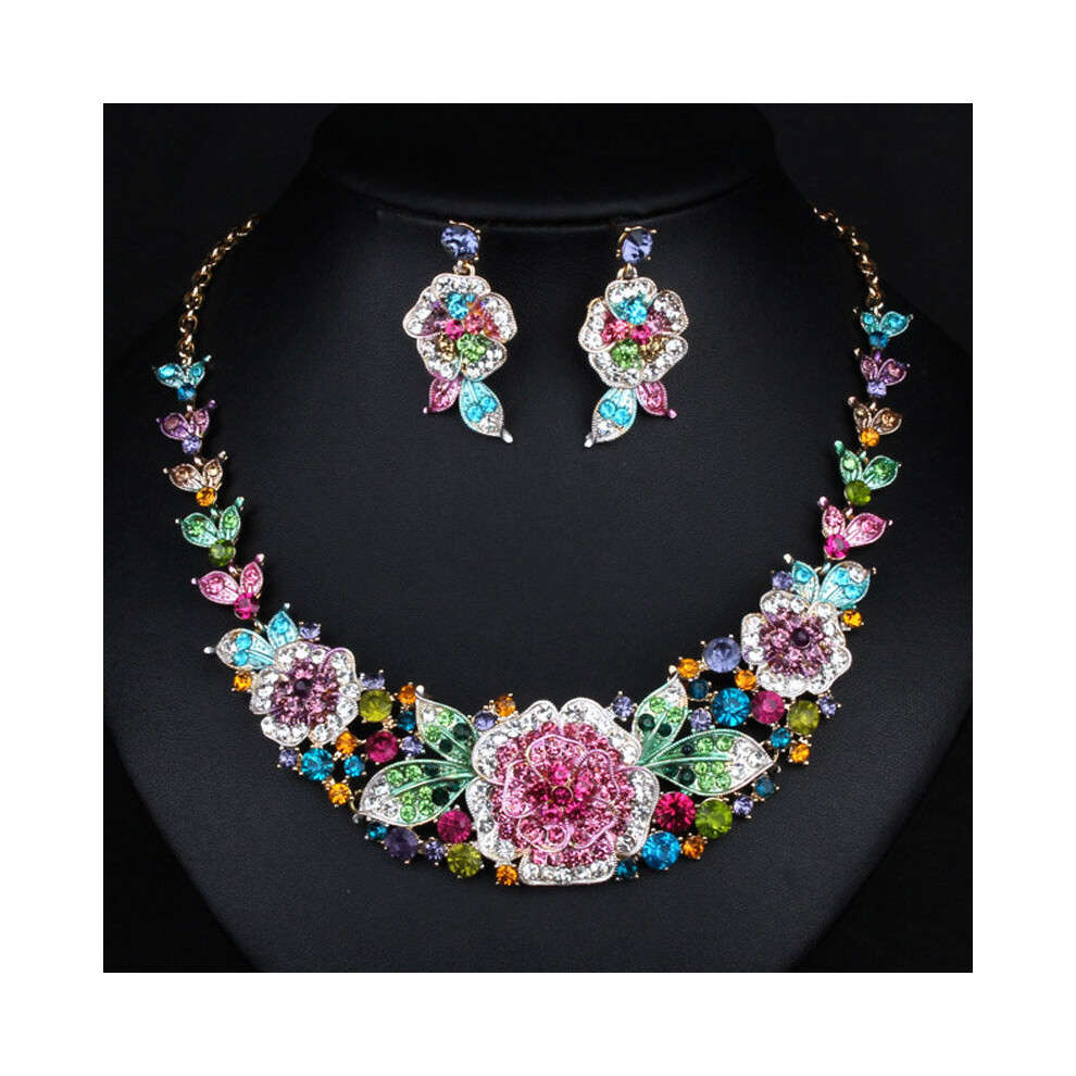 Zlxgirl Colorful women's Flower necklace And earring jewelry sets fine wedding bridal accessories sets