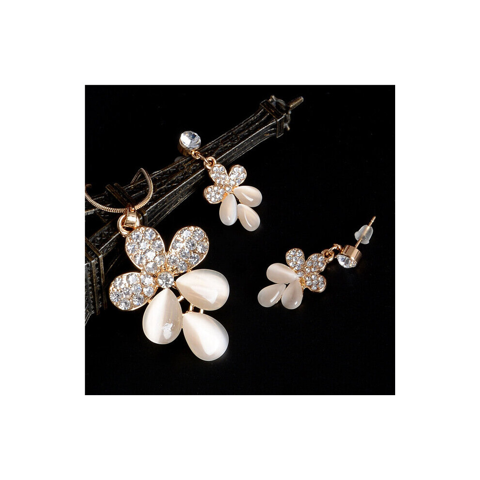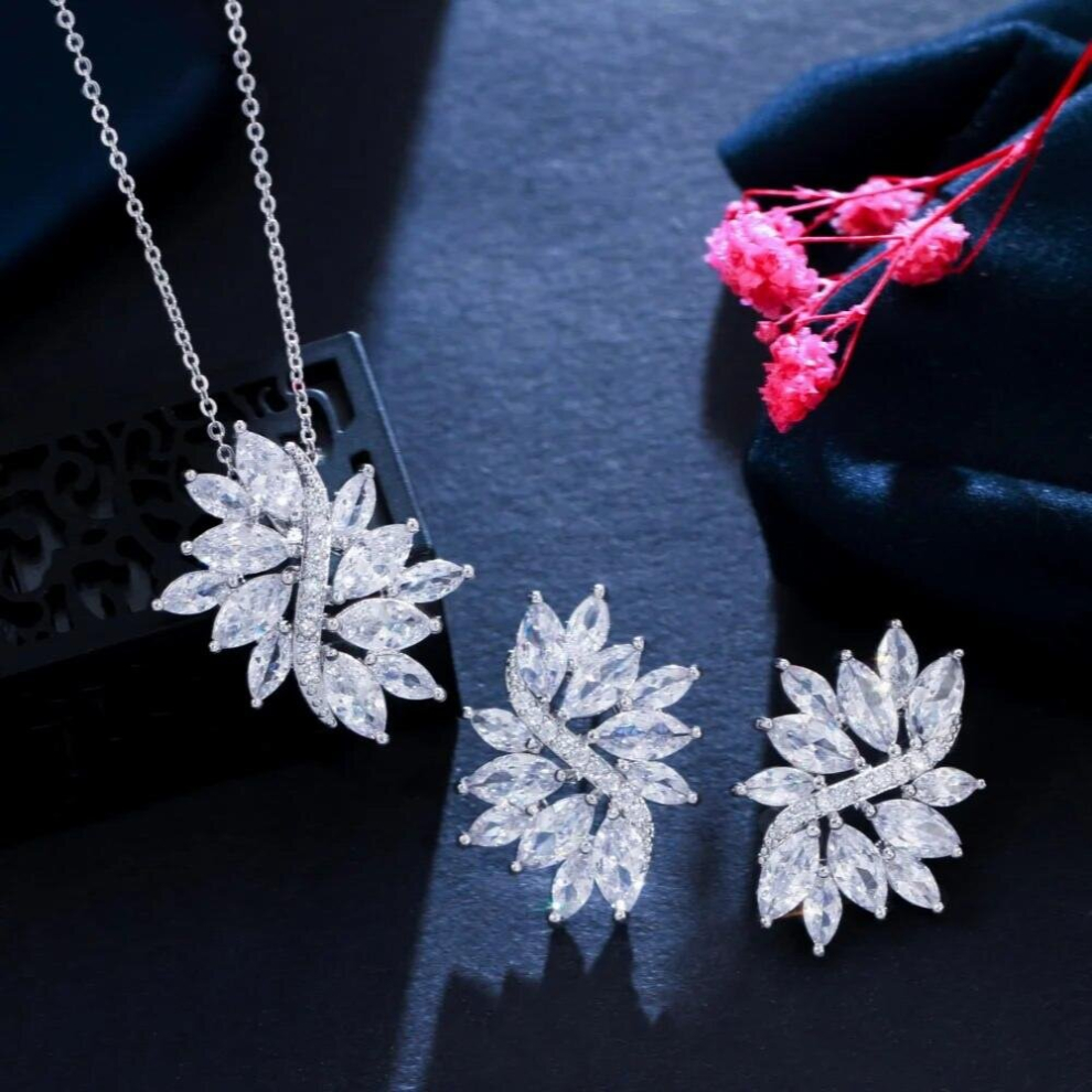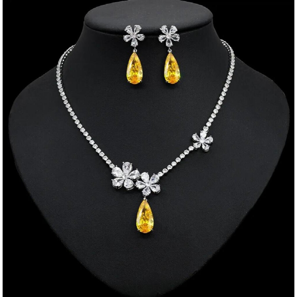 Flower Water Drop 2pcs Necklace and Earring Sets Cubic Zirconia Jewelry Set for Women Bridal Wedding