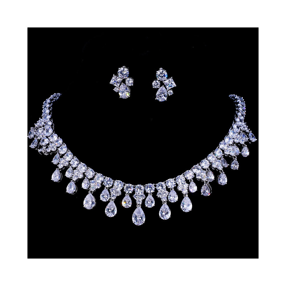 Zircons High Cubic Zirconia Bridal Wedding Necklace And Earring Sets Party Gift