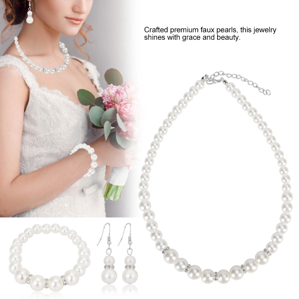 Faux Pearl Wedding Necklace Earring Bracelet Sets Bridal Jewelry Set For Wom BAJ