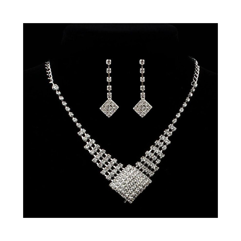 Prom Wedding Bridal Jewelry Crystal Rhinestone Necklace Earring Sets A