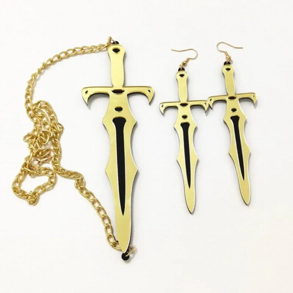 Long Sword Mirror Necklace and Earring Sets Acrylic Silver Jewelry Women Men Accessories