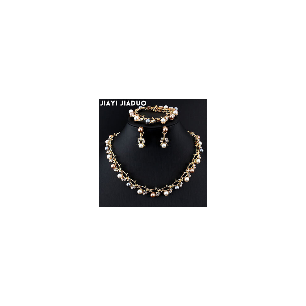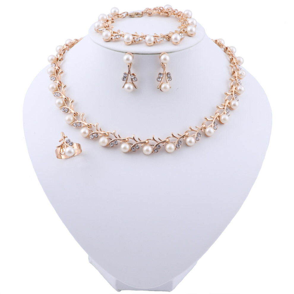 Faux Pearl Wedding Necklace Earring Bracelet Sets Bridal Jewelry Set For Wom HEN