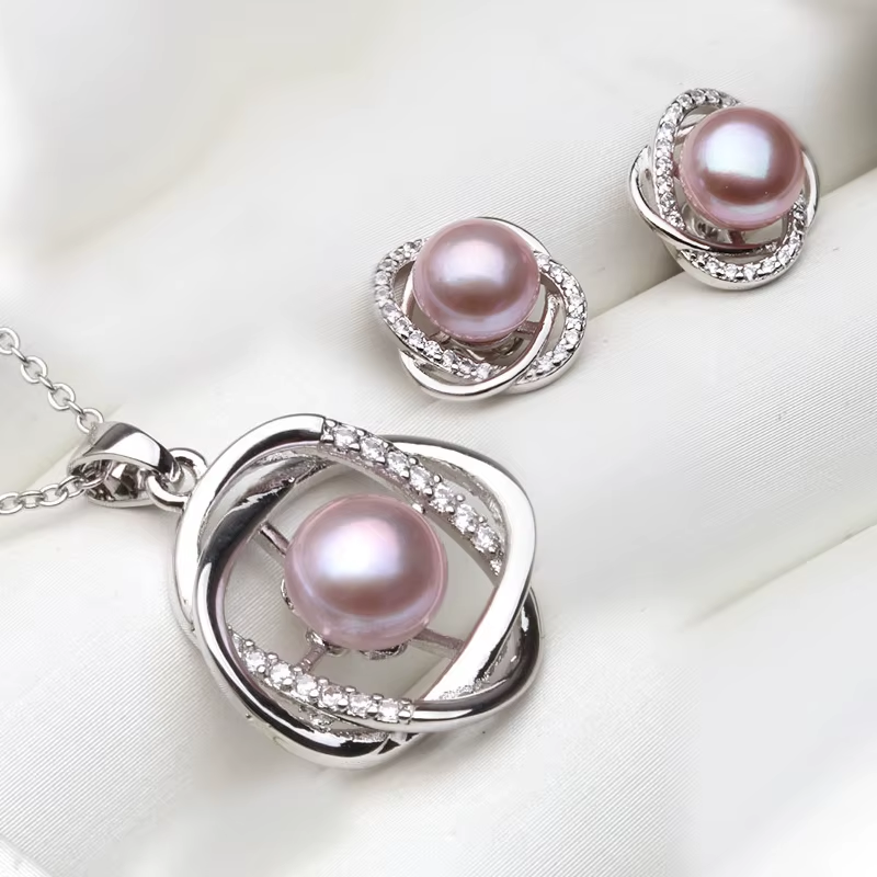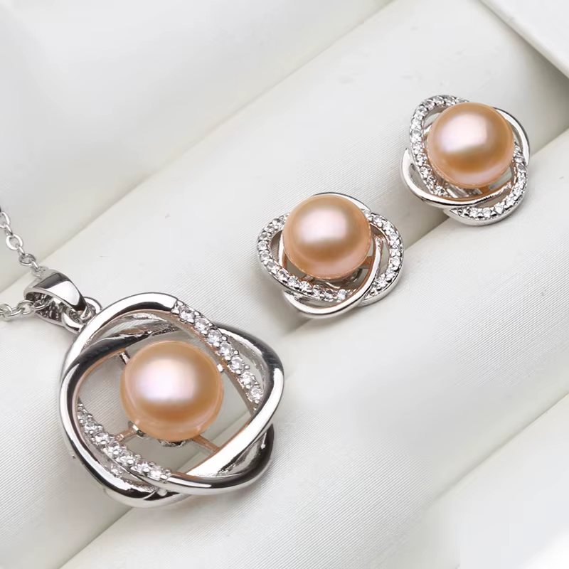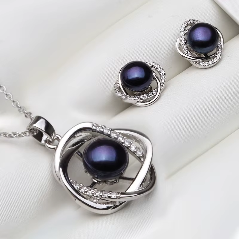 Real 925 Sterling Silver Necklace Earring Sets Women,Classic Wedding Natural Pea