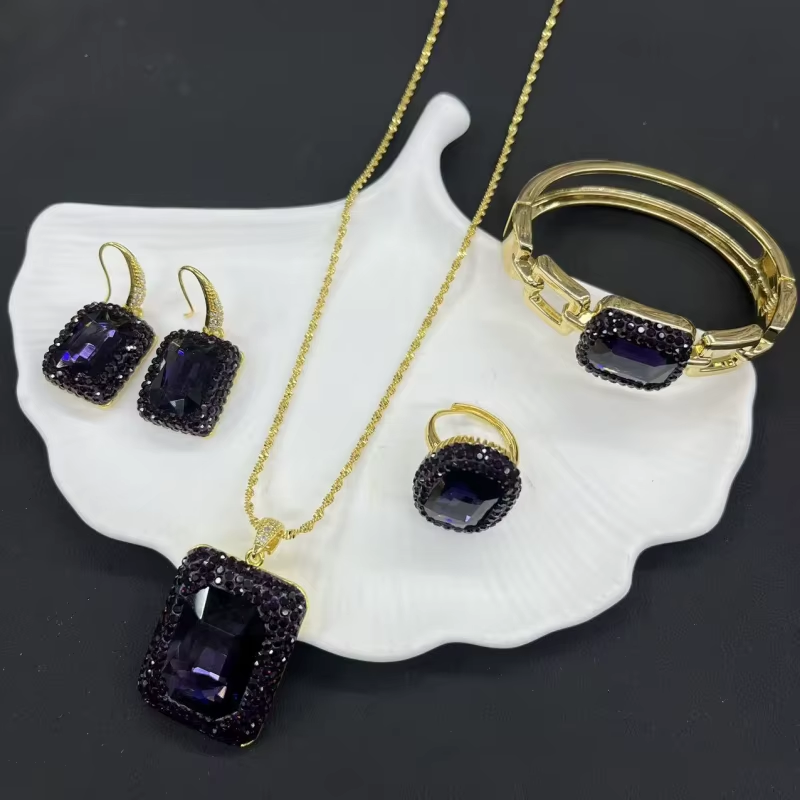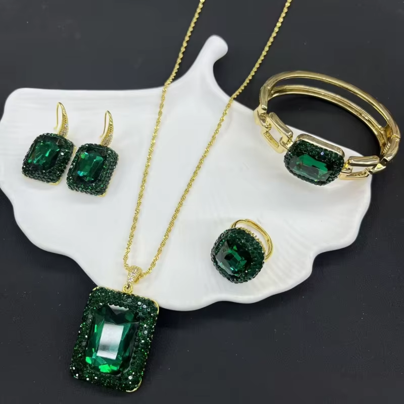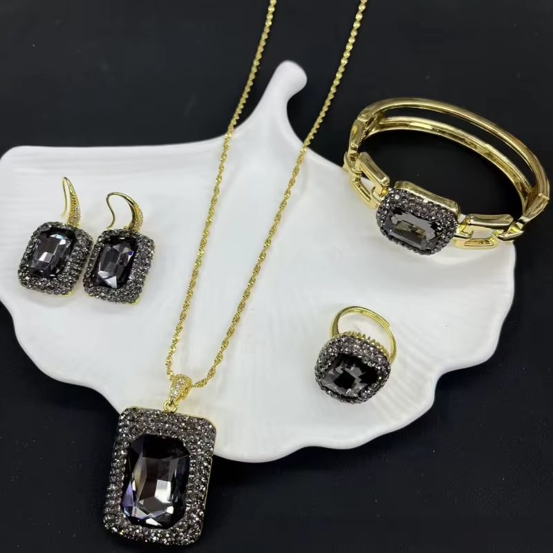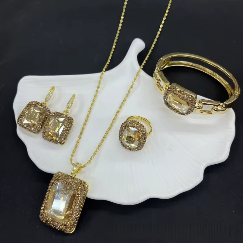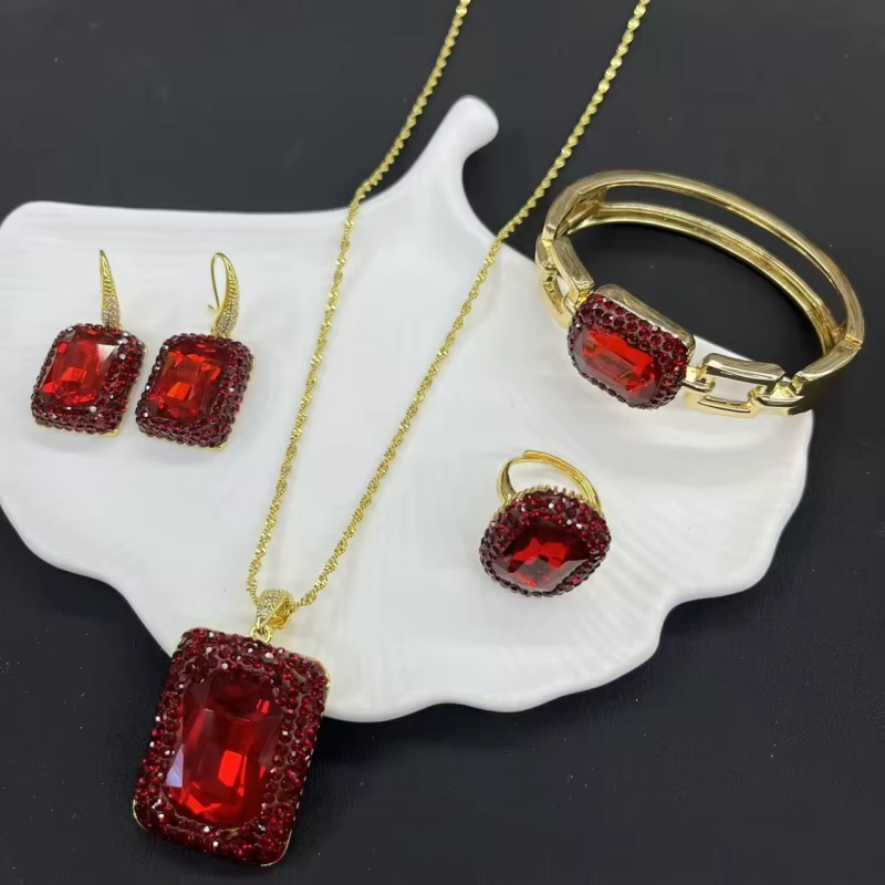 Luxury Large Square Crystal Necklace Earring Ring Jewelry Sets for Women Handmad
