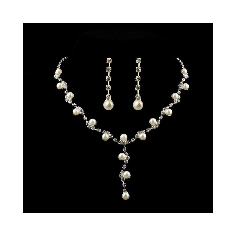 Jiayijiaduo Pearl Wedding Necklace Earring Sets Bridal Jewelry Sets for Women Party Gift Costume