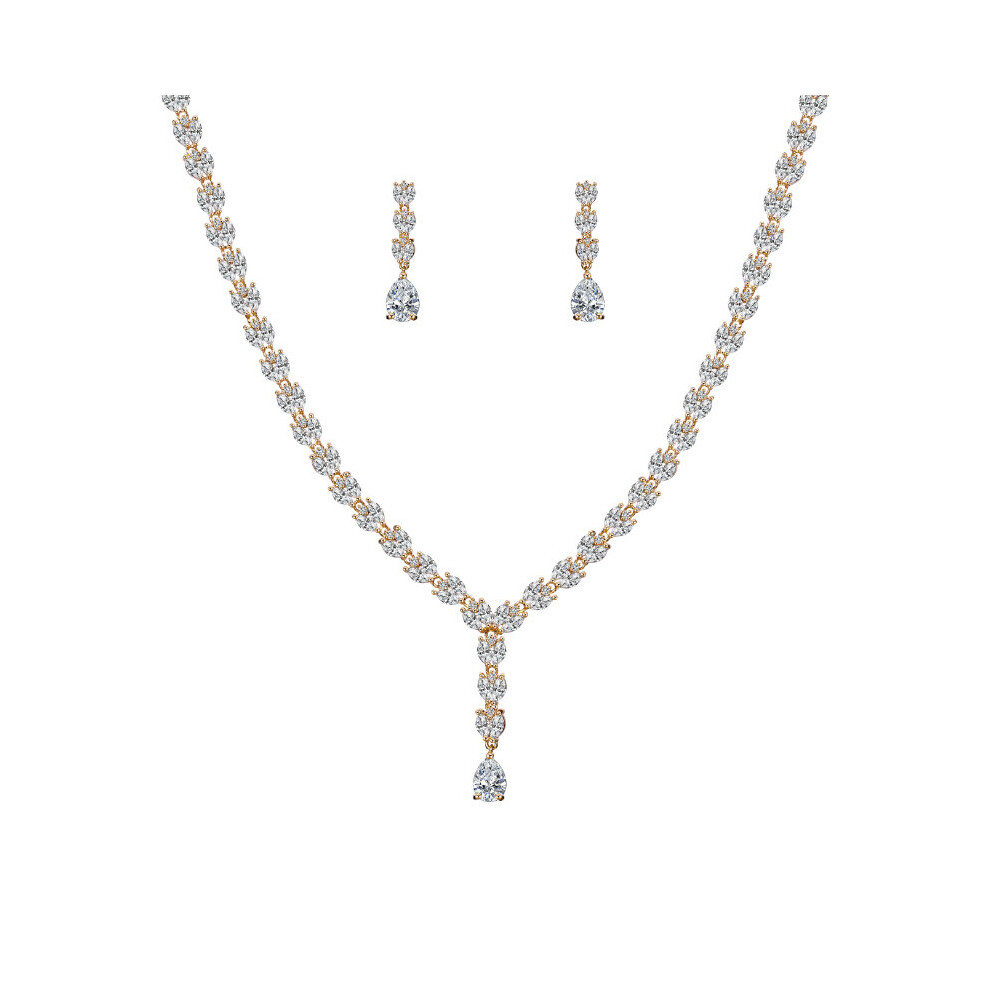 Long Drop Cubic Zirconia CZ Crystal Necklace and Earring Wedding Jewelry Sets for Bride or Bridesmaid
