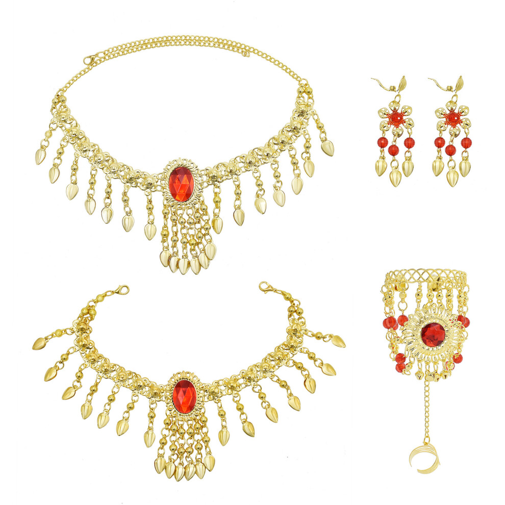 Indian Jewelry Sets for Women Bohemian Red Crystal Leaf Pendant Necklace Bracelet Earring Headbands Sets Egypt Afghan Party Gift
