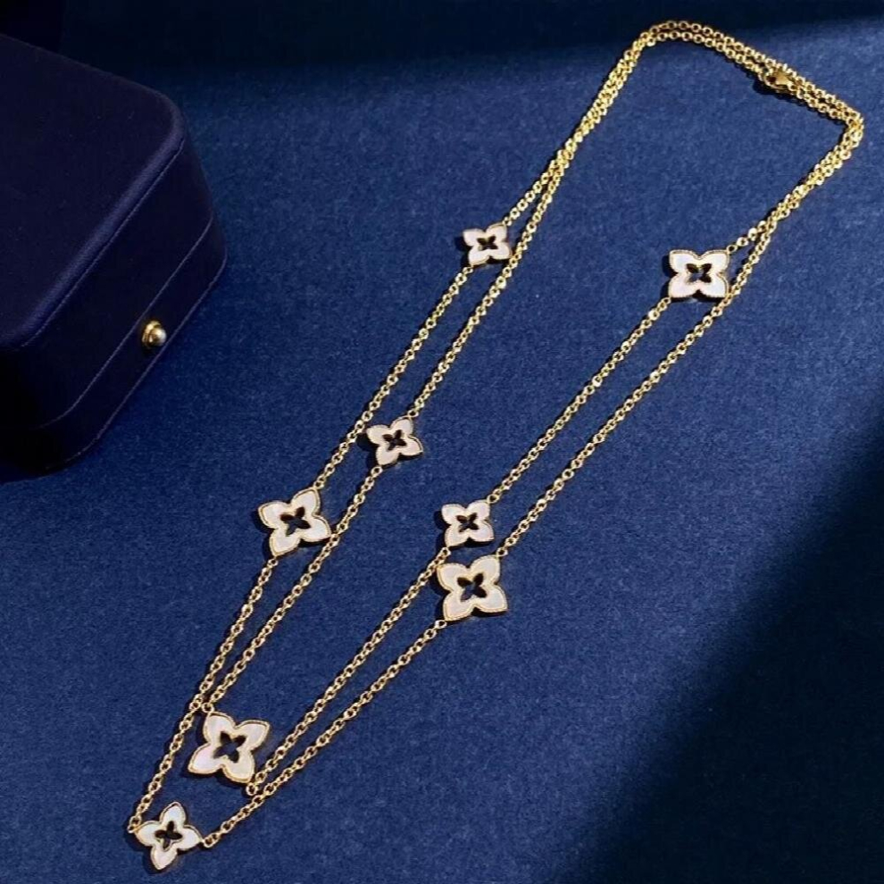 Top Shell Big And Small Flower Stainless Steel Chain Necklace Earring Bracelet Jewelry Sets For Women