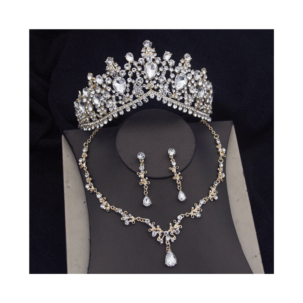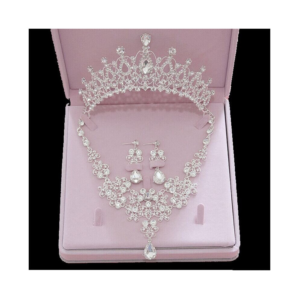 Crystal Rhinestone Crown Necklace Earring Jewelry Sets Bridal Tiara Necklaces Earrings Sets for Women