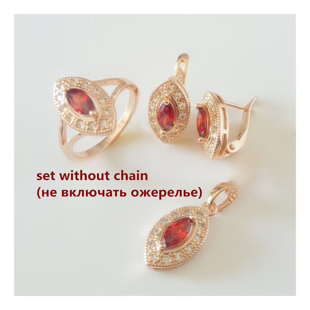 Wedding Jewelry Sets Rose 585 Fashio Jewelry Women Necklace and Earring Ring Jewelry Sets