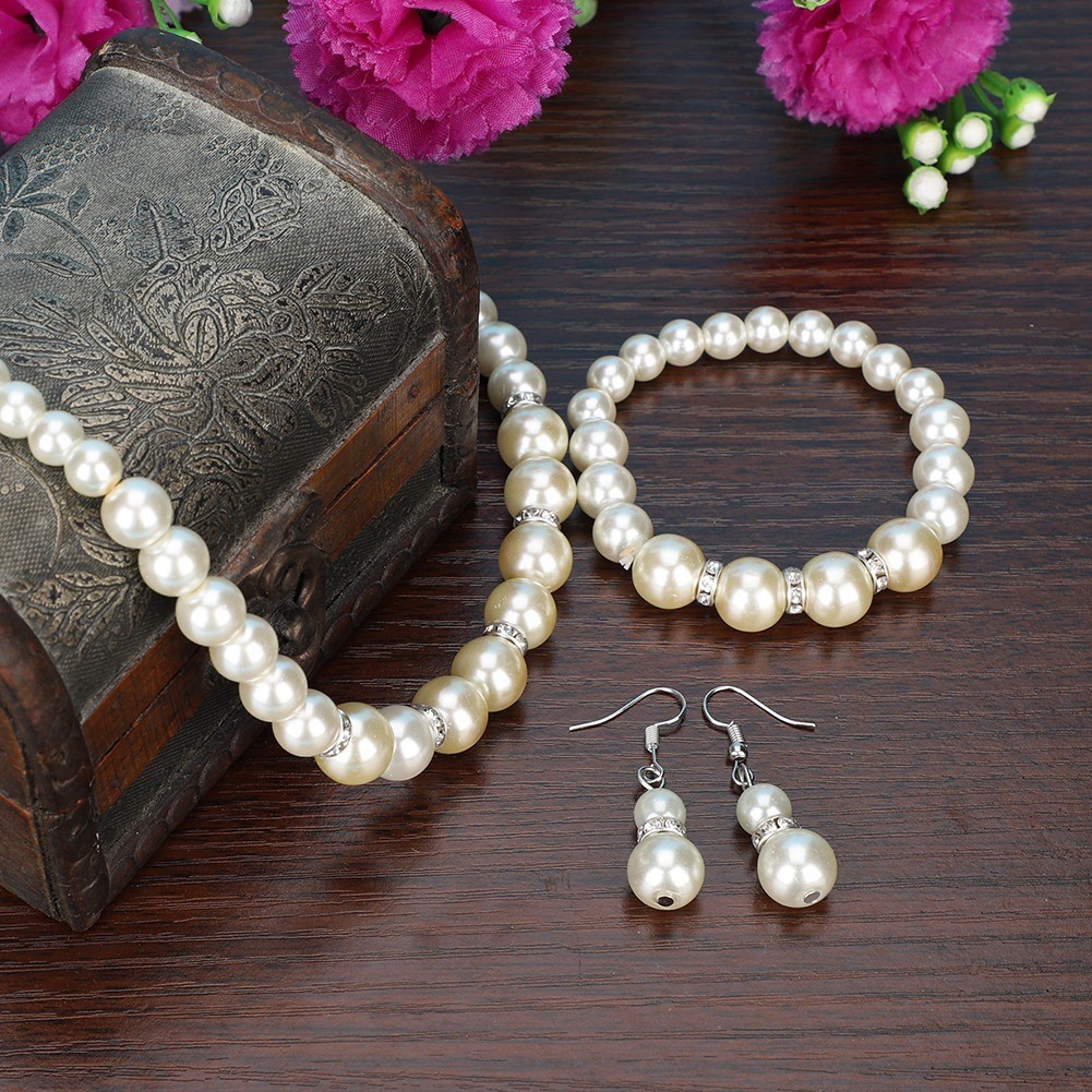Faux Pearl Wedding Necklace Earring Bracelet Sets Bridal Jewelry Set For Wom TOU