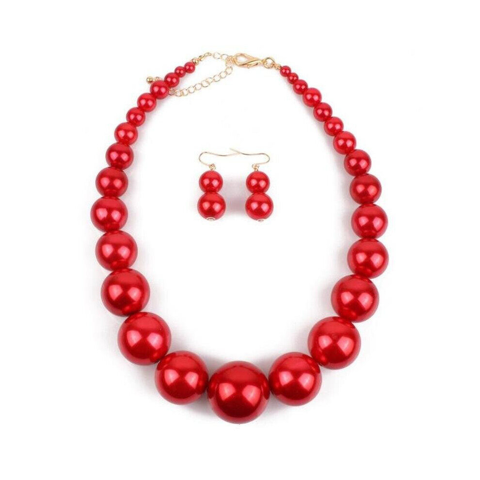 Round Big Simulated Pearl Necklace Earring Jewelry Sets For Women Statement Choker Necklace Jewelry Sets