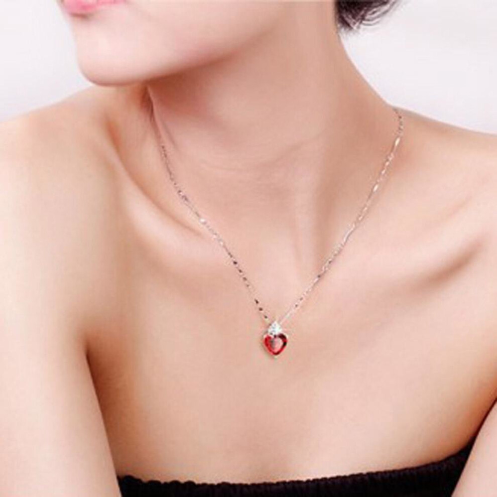 Sincere heart necklace earrings set Women Gold Red Heart Crystal Jewelry Sets Wedding Necklace Earring Sets #py30