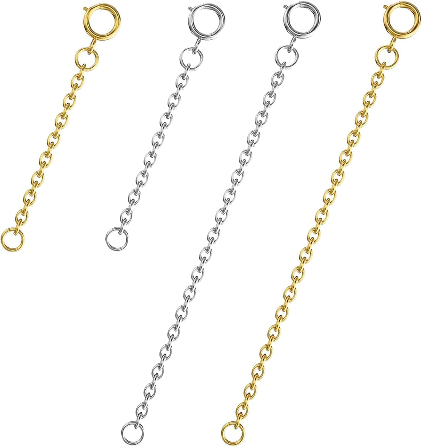 4Pcs Necklace Extender Gold & Silver, Bracelet Extender Chain Bracelet Safety Ch