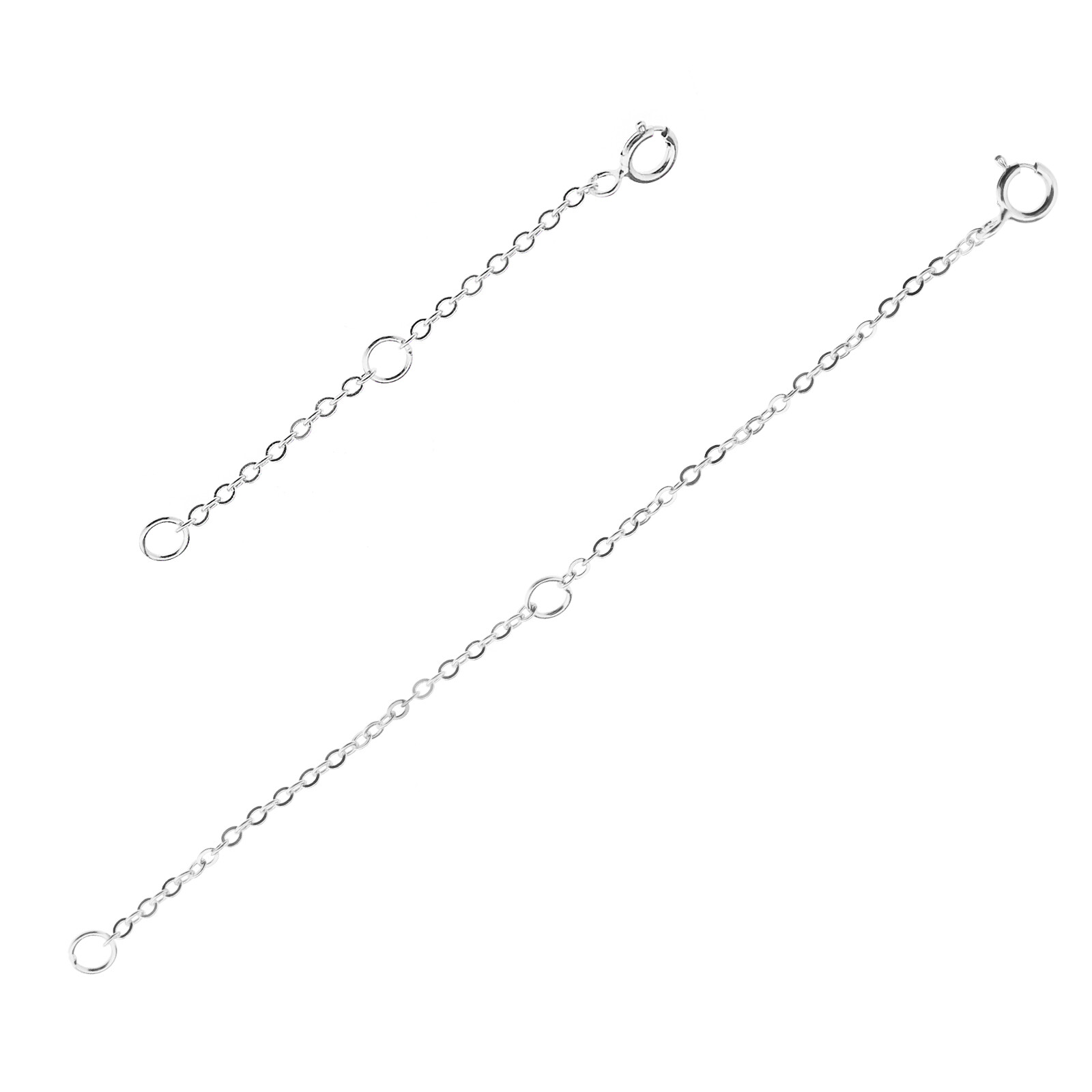 2x Necklace Extension Chain Sterling Silver Necklace Extender for Girl Silver