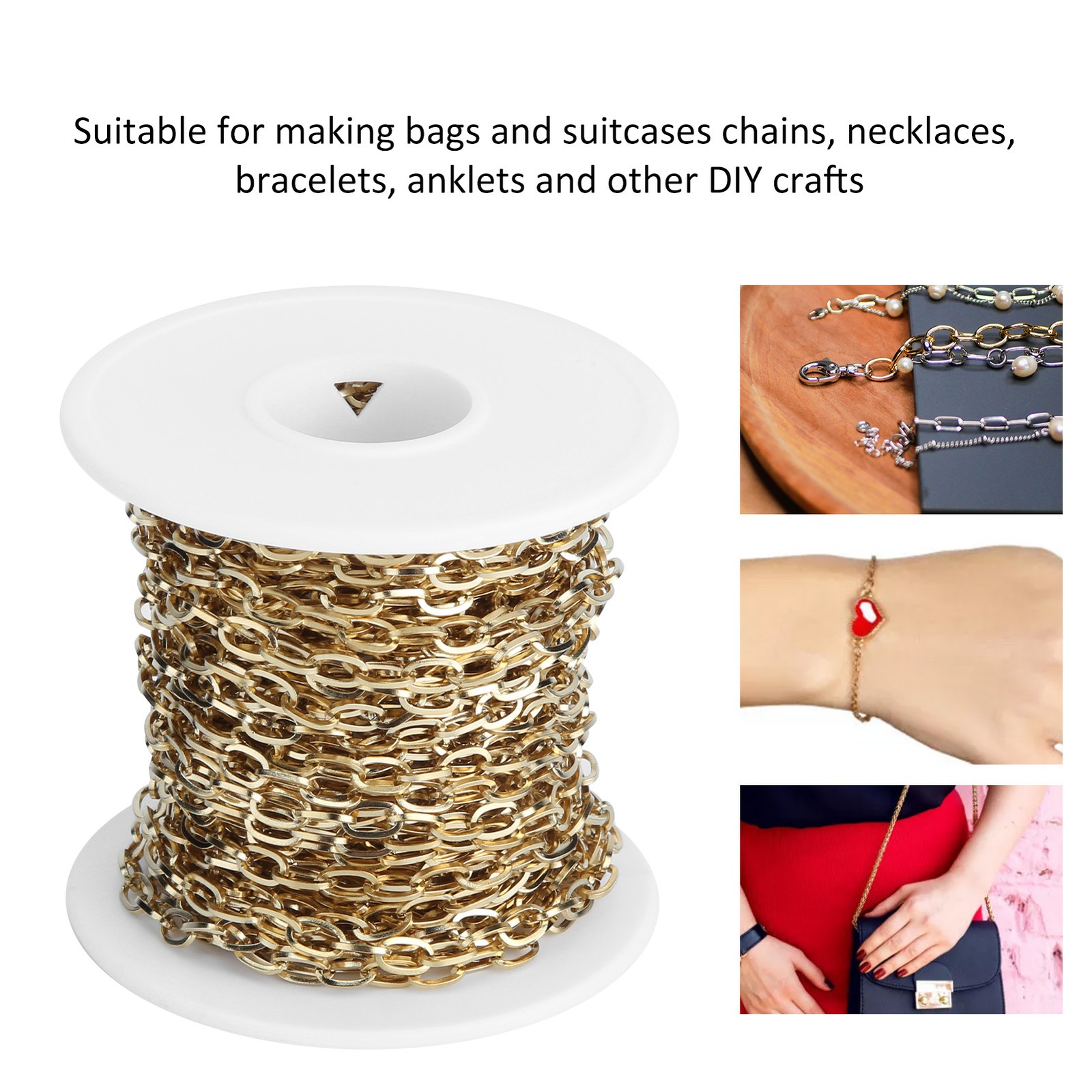 (Gold White-2.8mm) 5 Meter 2.5-4.8mm Long Open Link Rings Diy Accessories Extended Extension Necklace Chain Extender Tail Chains For Jewelry Making