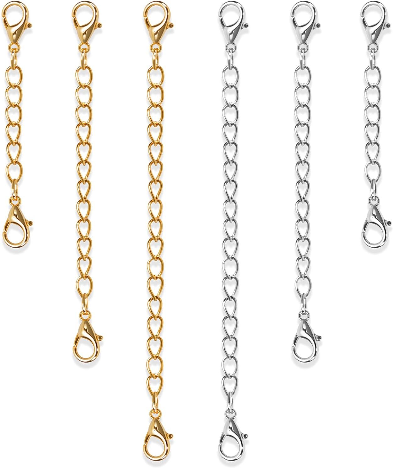 6 Pcs Necklace Extender Silver and Gold, Silver Gold Necklace Extender, Chain Br